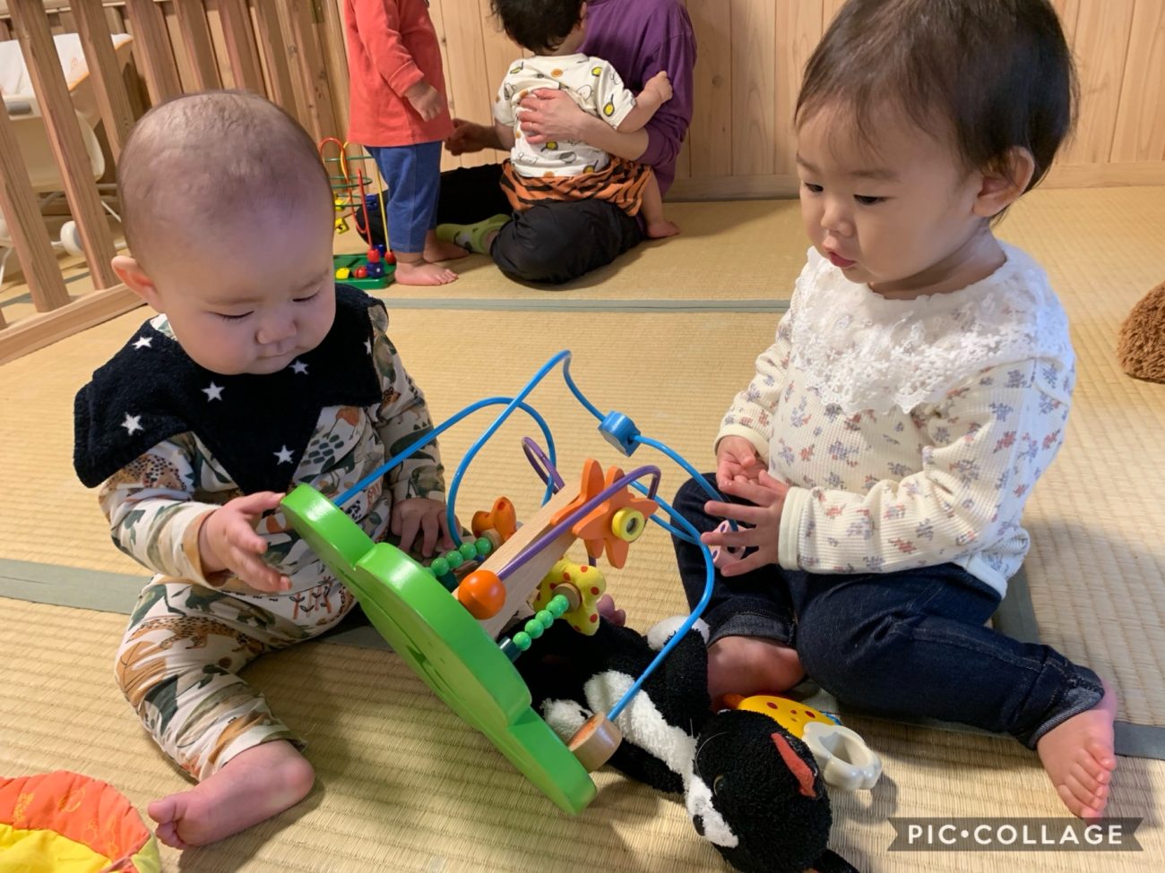 このように同じ空間で0歳児と1歳児が一緒に過ごすことで、今後もさらに、友だちとの関わりが増えていきます。友だちへの興味や関わりたいという気持ちから、友だちの顔を触って泣かれてしまったり、友だちを抱きしめた時に力が強く友だちに驚かれたりすることもあります。それも友だちとの距離感を上手く掴めるようになる為の最初の段階です。