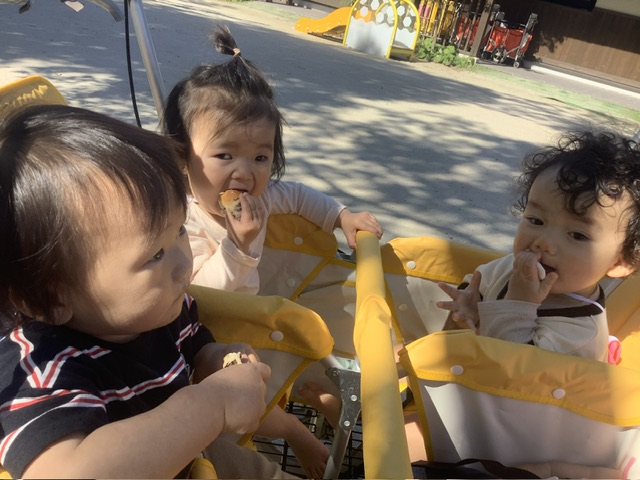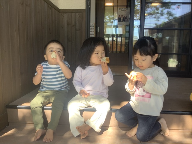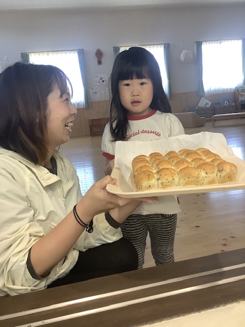 みんな、パンを手に持って、匂いを嗅いだり、あたたかさを感じたりして食べていました♡