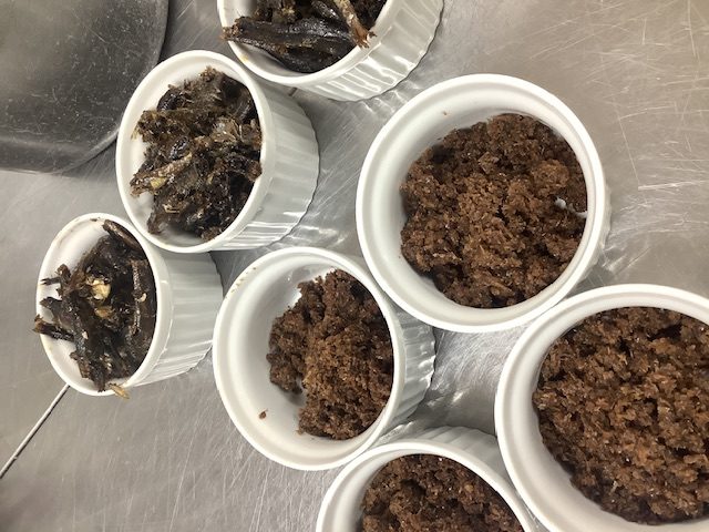 錦ヶ丘では、出汁を取った後のかつお節、昆布でふりかけを作っています。こちらは定番化しているのですが。。。それに加えて最近では、いりこも佃煮にして、子ども達に提供しています!