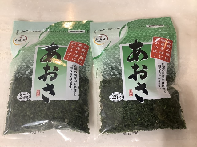 あおさのりの風味と程よい塩味で、美味しくパリッと仕上がりました。