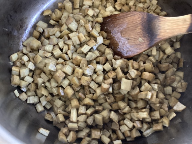 じっくり蒸し煮にすると、中までホックリ柔らかくなり、ごぼうの甘みも引き出され、全く土臭さがありません。