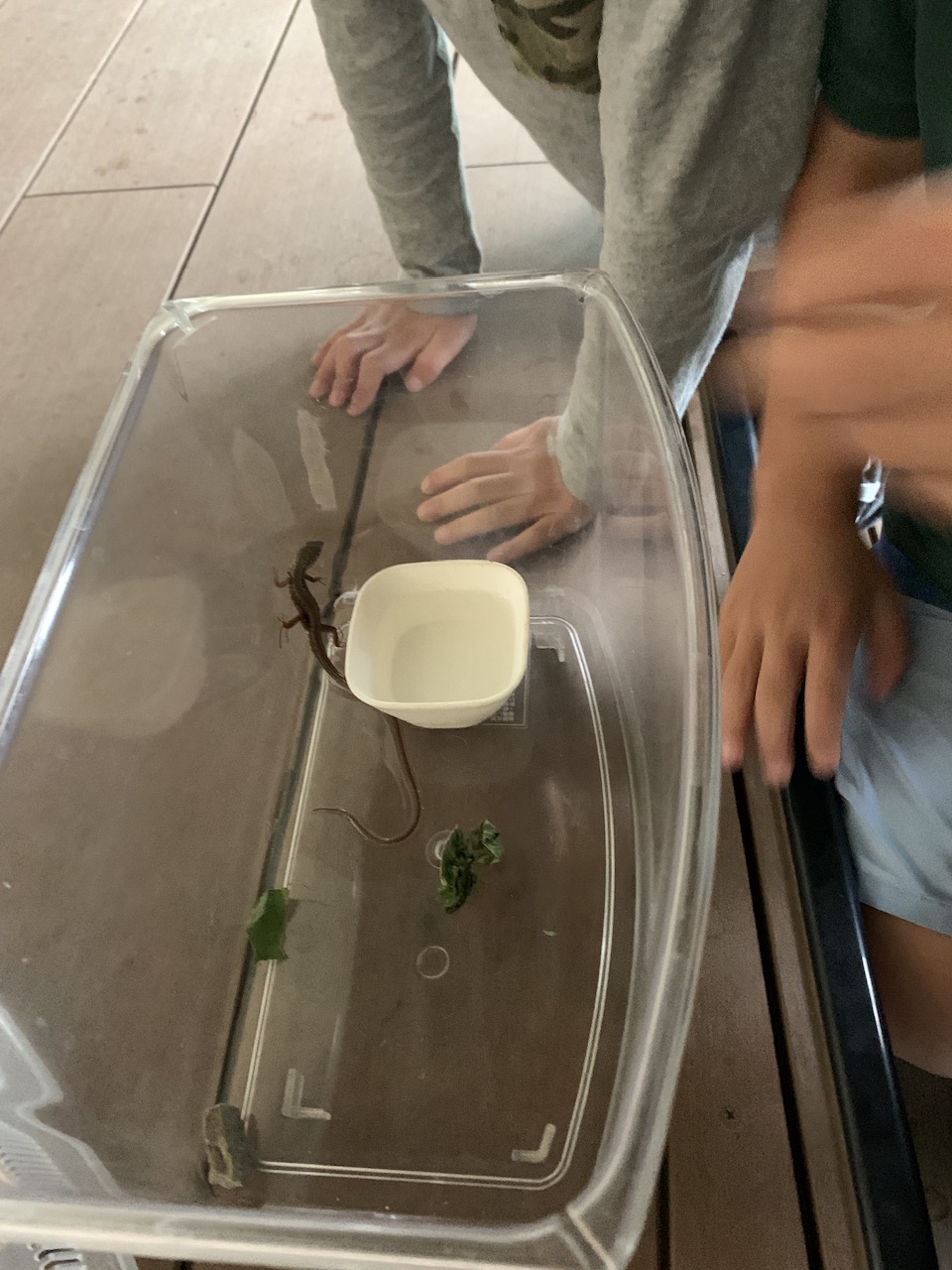 お世話を忘れてしまっている時には「カナヘビ今日はどんな様子かな?」と声をかけました。この声かけで子ども自身が食べ物や掃除が必要な事に気付くことができ、自分達でお世話しているという実感と命を扱う責任感を持てるようにしました。