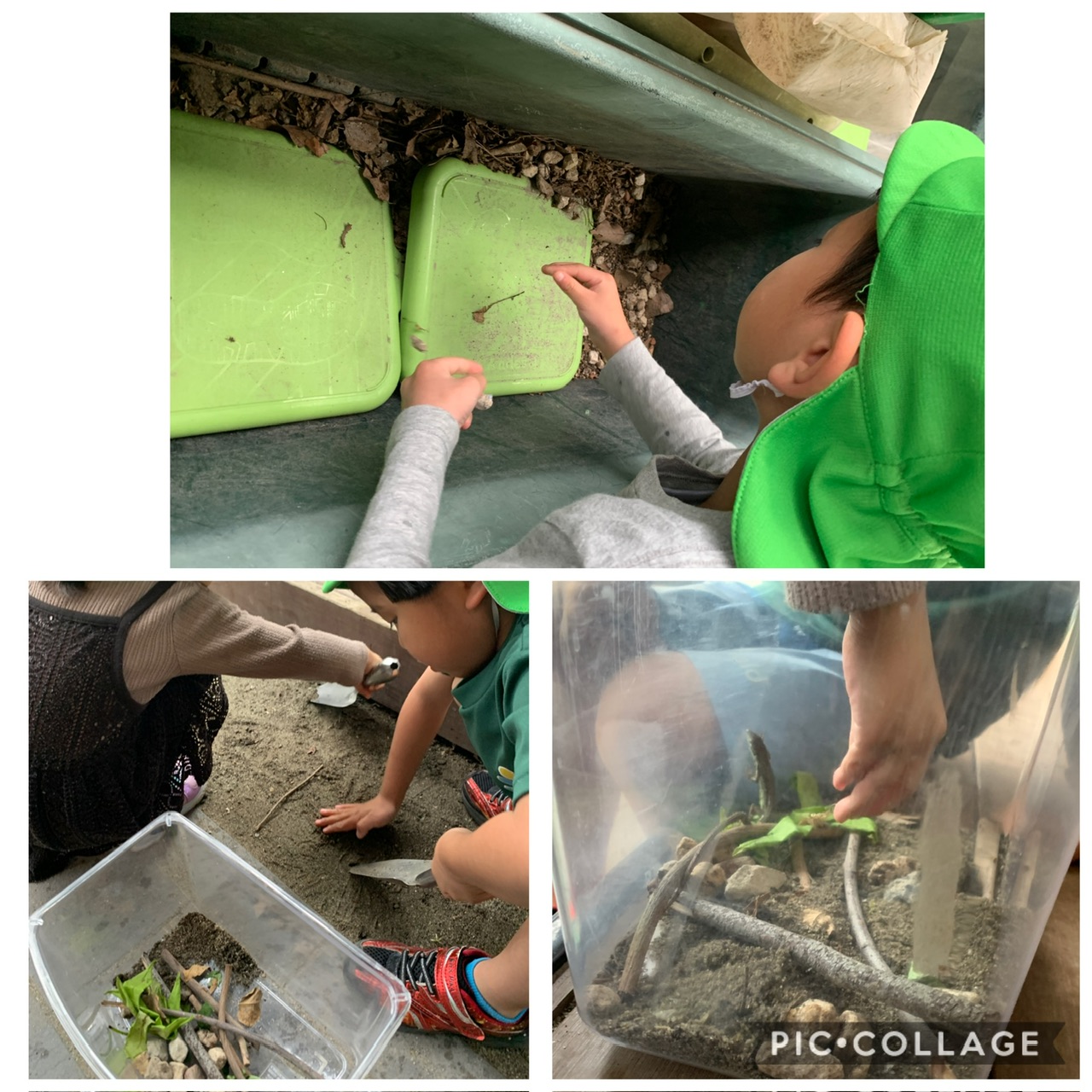 捕まえた日から、お家でもカナヘビのお話をしていたようで、お家の人と一緒にカナヘビについて調べている子や家の近くにいたバッタを「カナヘビにあげたい!」と捕まえて持って来てくれた子もいました。