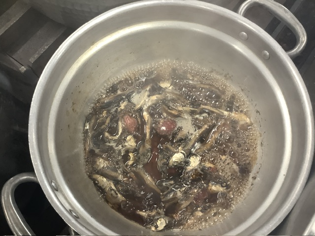 お味噌汁の出し殻のいりこに梅干しを入れて、濃口醤油、みりんで炊くだけ。とても大きないりこで、固さもあり、噛み応えのあるいりこなので大人でも顎が鍛えられます。