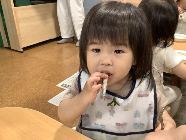 きびなごを手で持ち、前歯で上手に噛み切って骨を噛み砕く姿が見られました。ガブっと噛んでスルッと骨だけ上手に出す子もいました(笑)