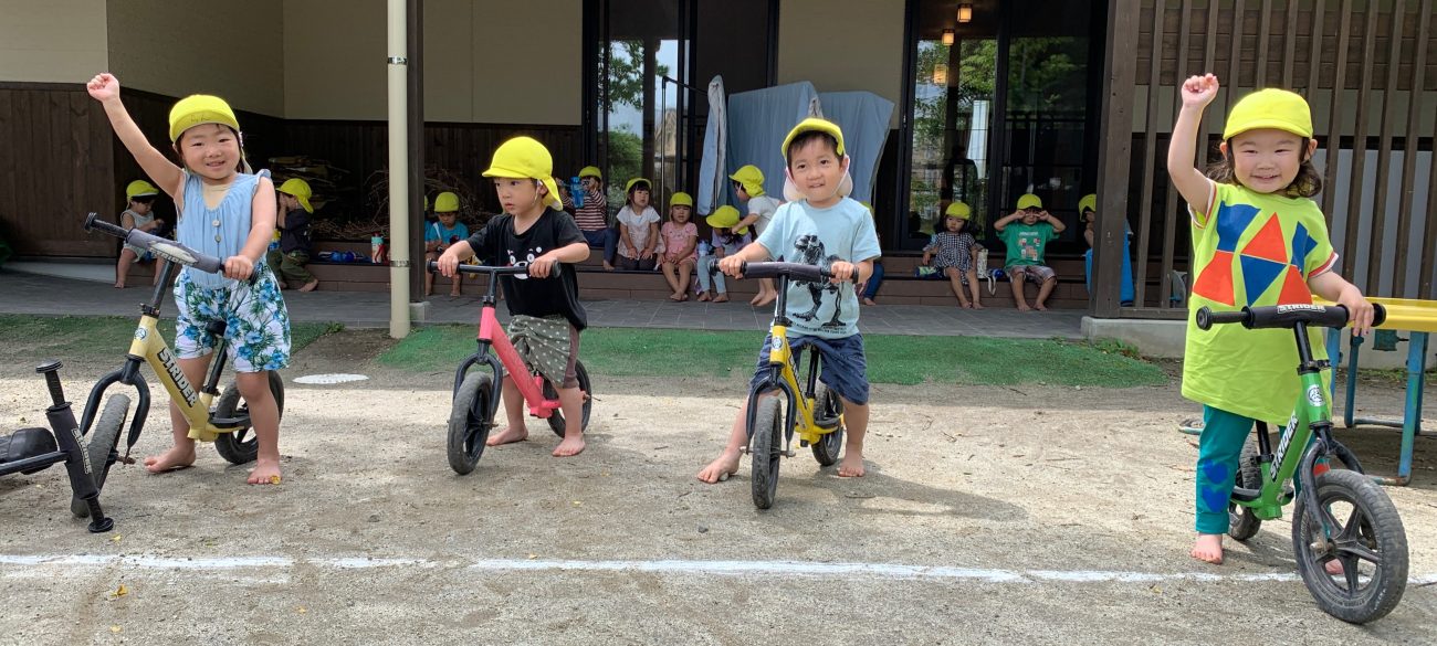 今回も運動会に向かっておとなが決めた競技の練習を頑張るのではなく、毎日バイクで遊んだり、ダンスをしたり等、日頃楽しんできた遊びの中からこども達と話し合って【バイクレース】【ダンシング玉入れ】【かけっこ】を競技に取り入れることが決まりました。