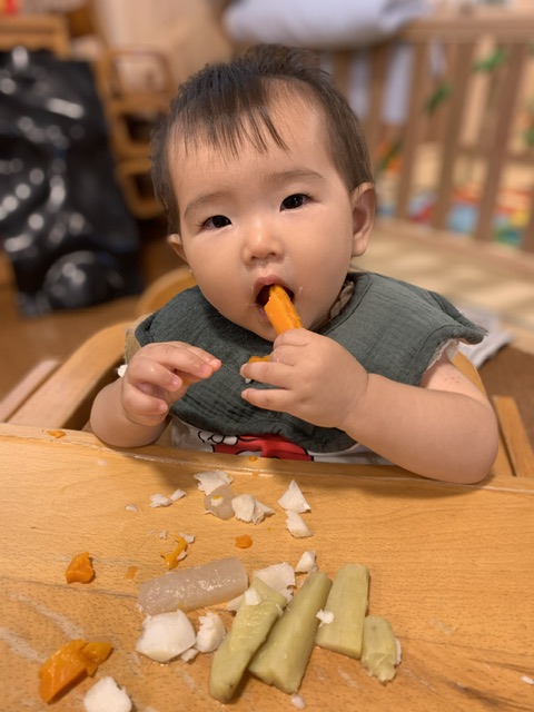 五感をフルに使い、目で食べ物の色や形を認識したり、触ることで温度を感じたり、口に入れて固さや味を確認したりと幅広い刺激を受けていきます。