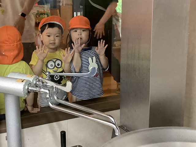 運動会練習に向かうゆり組のこども達が、窓からじーっと見つめている姿が見えました♪