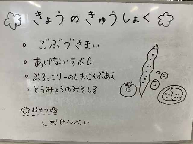 塩昆布の味とごま油の風味がこども達にも食べやすかったかと思います。給食室にも「ブロッコリー全部食べられたよ」「これまた作ってー!」と嬉しい声がたくさん聞こえました♪