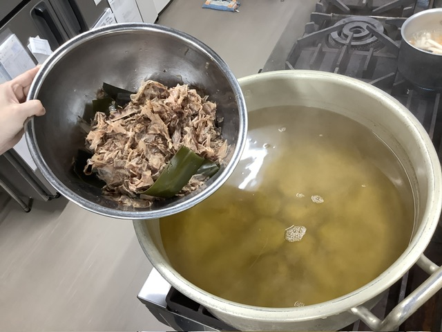 昆布とかつお節のうま味成分の相乗効果により、錦ヶ丘こだわりの黄金だしが出来上がりました!