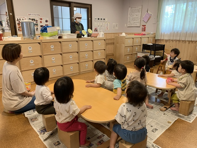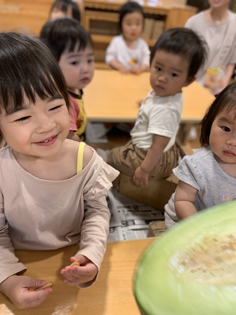 さくらんぼ組の子ども達と6月からたくさんの夏らしい食べ物に触れ、その美味しさをみんなで味わいました。今回はその様子についてお伝えしようと思います。