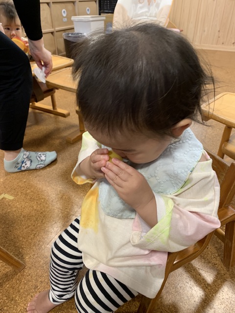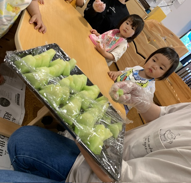皮まで食べようとする子、指についた果汁まで舐める子。みんな最後まで綺麗に食べてくれました。
