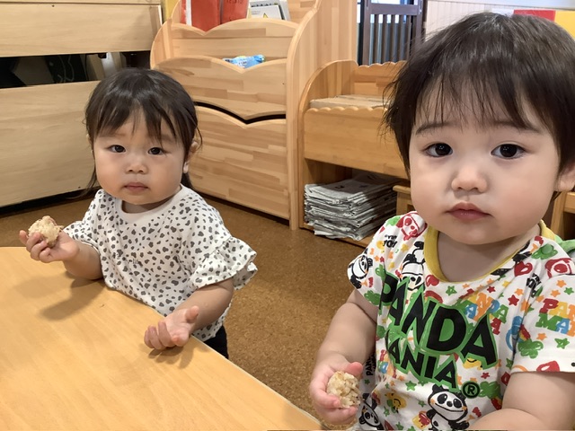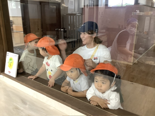 捏ねている最中、ゆり組の可愛い子どもたちが見にきてくれました。