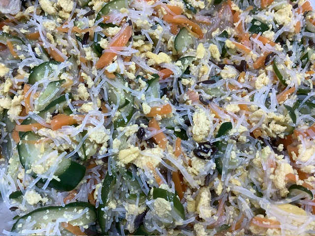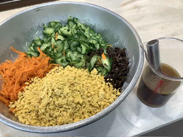 錦ヶ丘プラス定番の人気メニュー、春雨の酢の物(こどもたちはよくチュルチュルと呼びます)