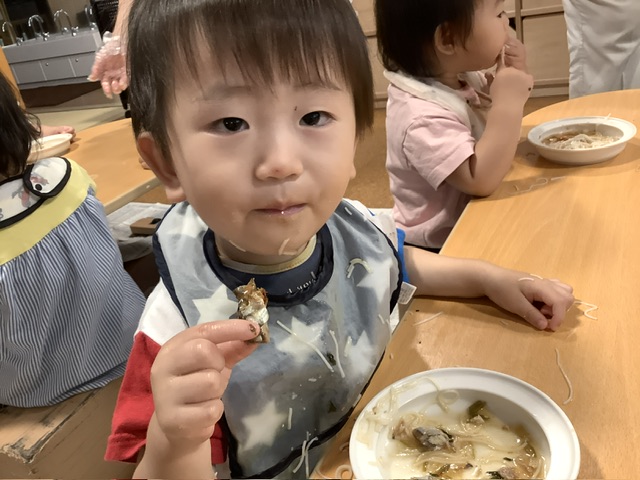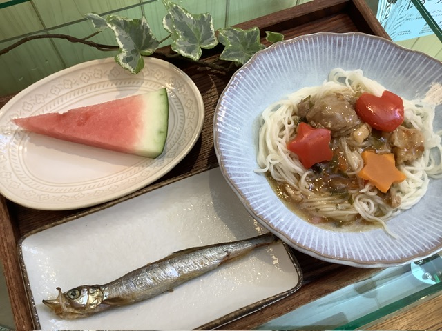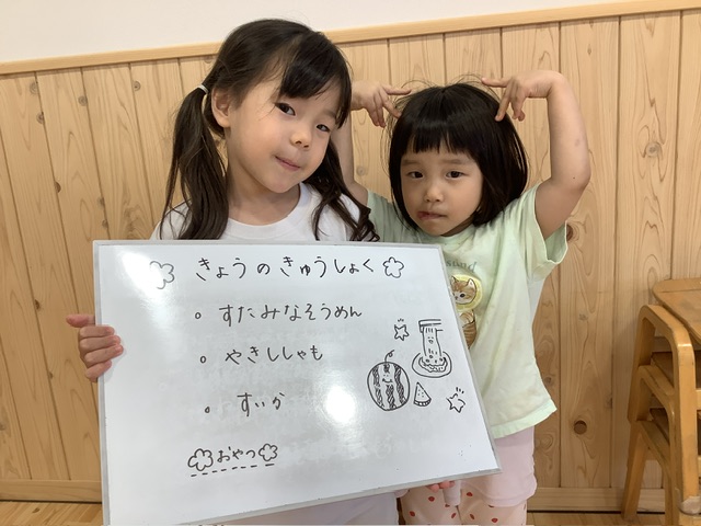 今日も気温が高く、暑い暑い!こども達が夏バテしないように、栄養たっぷりスタミナソーメンを作りました。