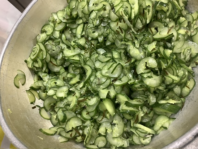 いつもは塩昆布和えなのですが…今日は、ぬか漬けにした昆布をきゅうりと和えてみました!
