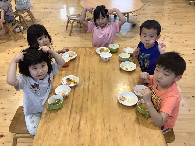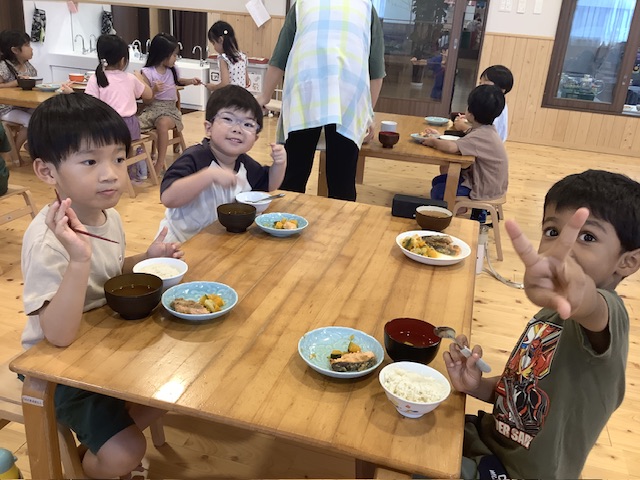 一緒に給食を食べると「私はご飯が好きなんだ〜♡」や「お肉が好き〜」など色々教えてくれます。今日は「お肉は鶏肉、豚肉、牛肉があるよねー!」と話してくれてびっくり🫢給食室からも、食材を子ども達に見せたり、触ってもらったりする機会をたくさん作れたらいいなと思いました。