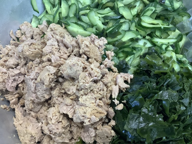 きゅうり、ワカメ、ツナをたっぷり入れました。