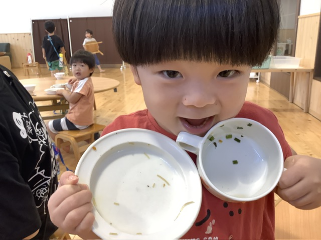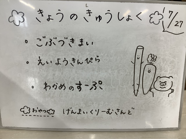 献立ではワカメの味噌汁でしたが、都合により、ワカメスープに変更になりました。