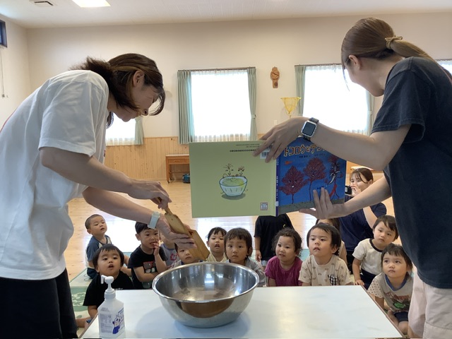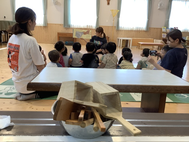 また、絵本でところてんが突かれていくシーンと同じように突いてみせると「やってみたい!」という声がたくさん上がりました。