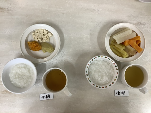 食材を指差して「これは何?」と問いかけるような仕草や、配膳される食器を目で追いかけるなど、給食を待っているこども達の様子が近くで見られました。