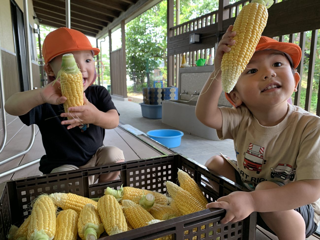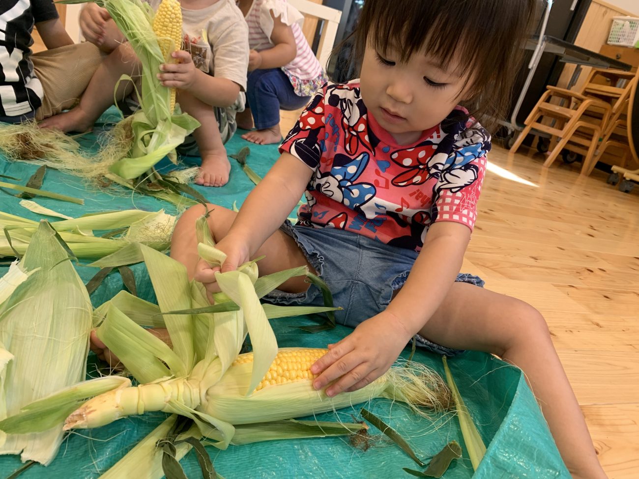 錦ヶ丘では、あえて皮付きのとうもろこしを発注して食育に繋げています。