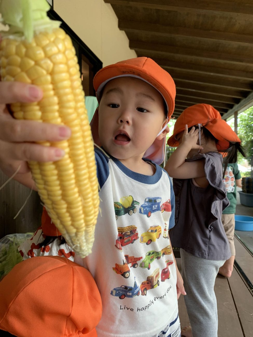 このような経験がままごとにも反映され、ままごとの食材にあるとうもろこしをもって