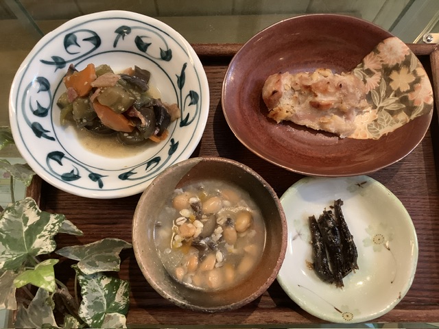 大豆・といもがら(ハスイモの茎の部分)・かぼちゃ・人参・ごぼう・油揚げ・きくらげが入った具沢山の汁です。