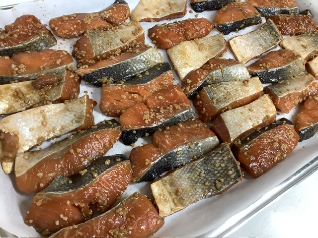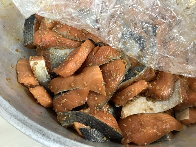 今日は、鮭を手作り醤油麹に漬け込んで焼きました。