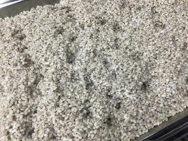 2日目となる今日は、水に浸けていた米と麦を蒸し、種麹と混ぜる工程を行いました。