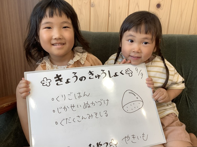 今回は白米と一緒に、栗と酒、塩を混ぜて炊き込みました。ふっくらホクホクで甘みの強い栗を食べて、こども達にも秋の訪れを感じてもらえたらと思います。