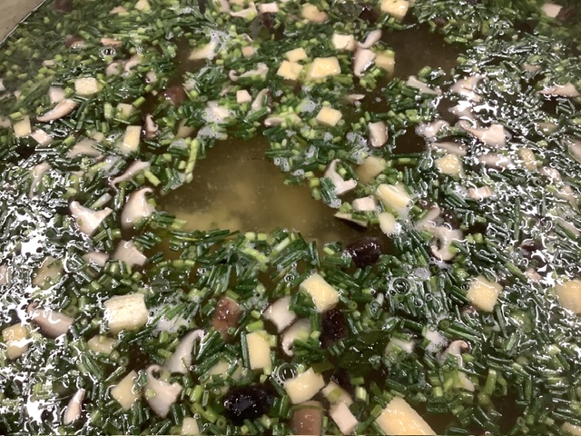 生椎茸、小松菜、油揚げ、小ネギが入りました。