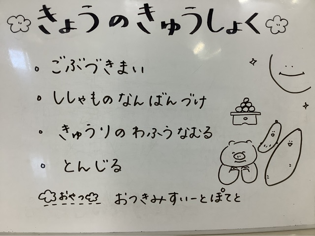 今日のおやつは、絵本「おつきみパーティー まんまるまんまる」(文・すとうあさえ/絵・山田 花菜/出版社・ほるぷ出版)とコラボした、お月見スイートポテトでした。