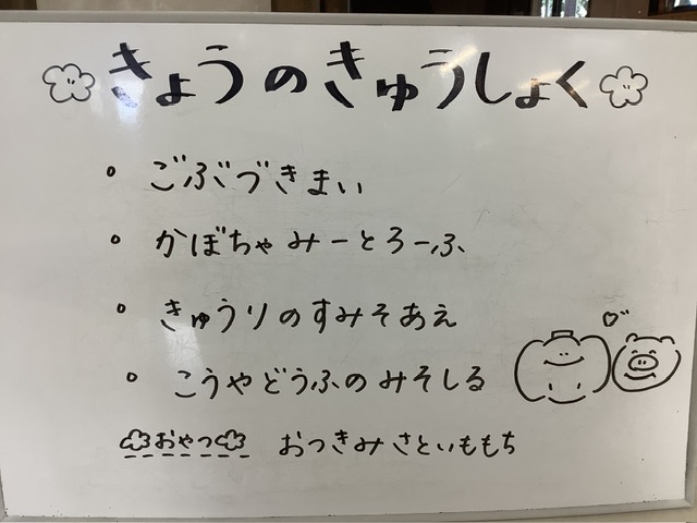 今日のかぼちゃミートローフはこども達にとっても大人気で、おかわりには長蛇の列ができるほどでした。給食室に、「全部食べたよー!」とお皿を持ってきてくれた子もいて嬉しくなった給食チームでした!