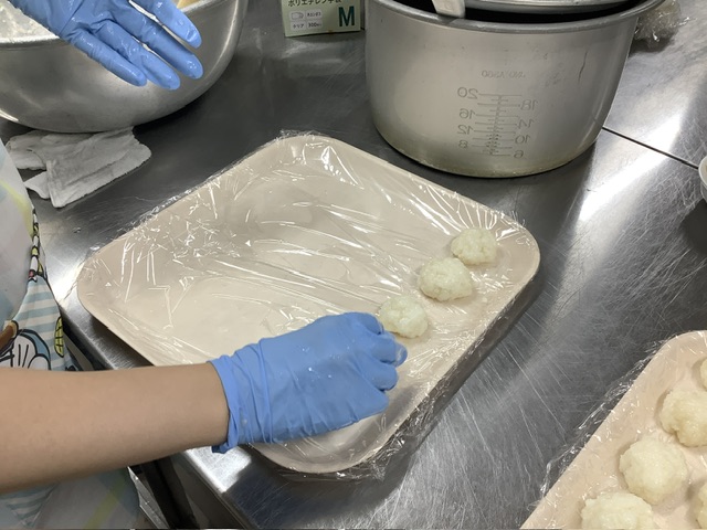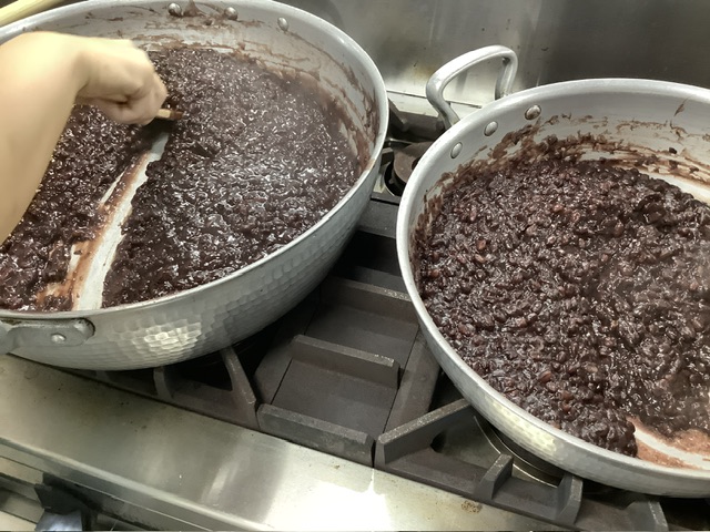 「このくらいの甘さだったら食べやすいかな?」と給食チームで話しながらいい塩梅のアンコにしました。