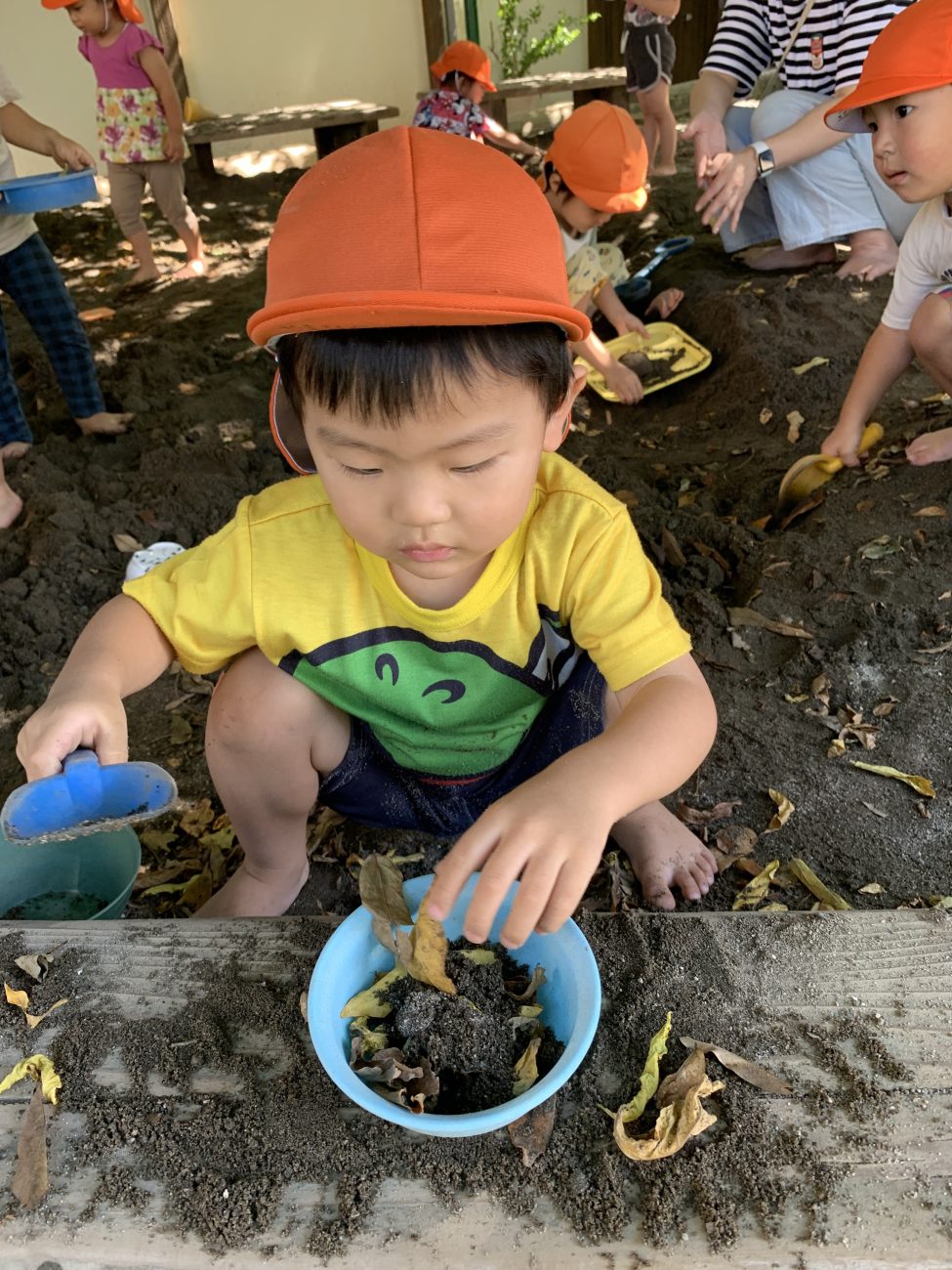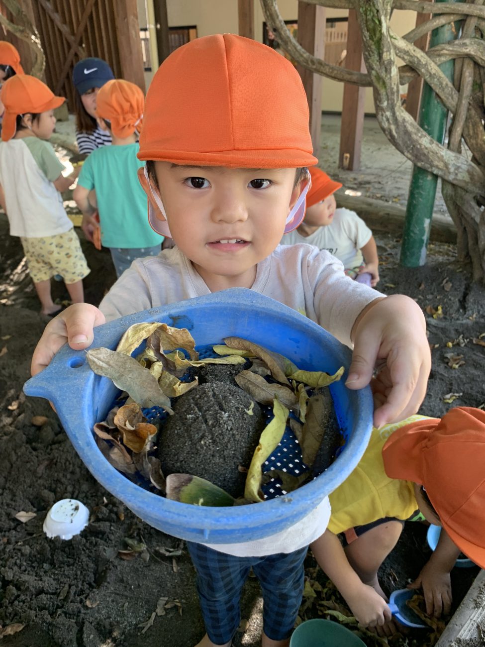 砂場周りの葉が一気に落ちはじめ、大喜びの子ども達。