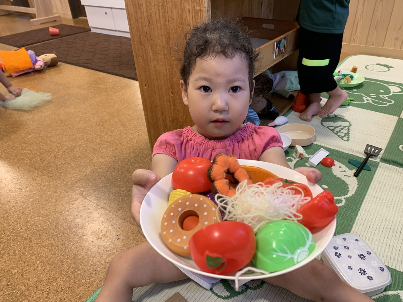 ままごとが大好きなゆり組。「今日は何して遊びたい?」と問いかけると必ず「ままごと」と教えてくれます。