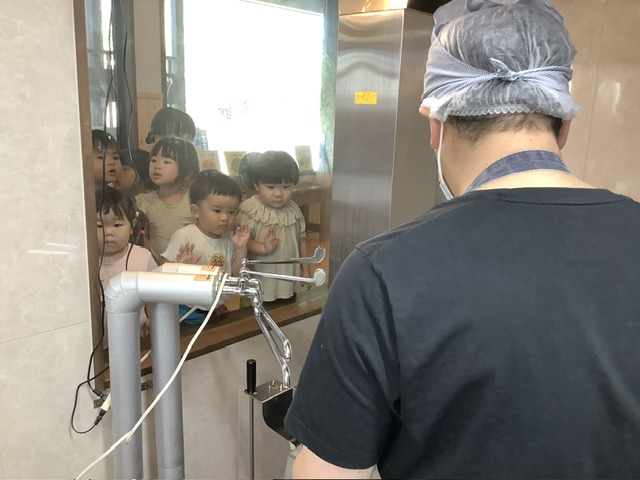 今日の給食室には錦ヶ丘プラスの園長の姿が!