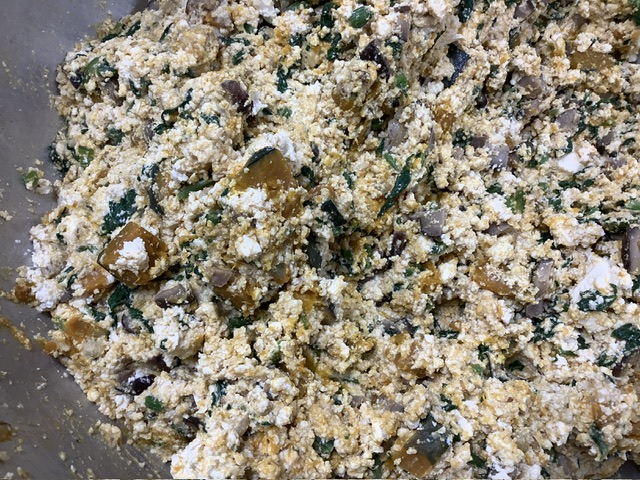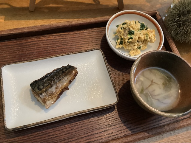 旬野菜のよごしは、かぼちゃと小松菜、干し椎茸がたっぷりと入った白和えでした。