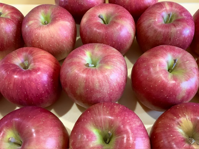 長野県産のシナノスイートという品種が届きました。皮の赤色も鮮やかで、実もとっても甘くて美味しいりんごです!