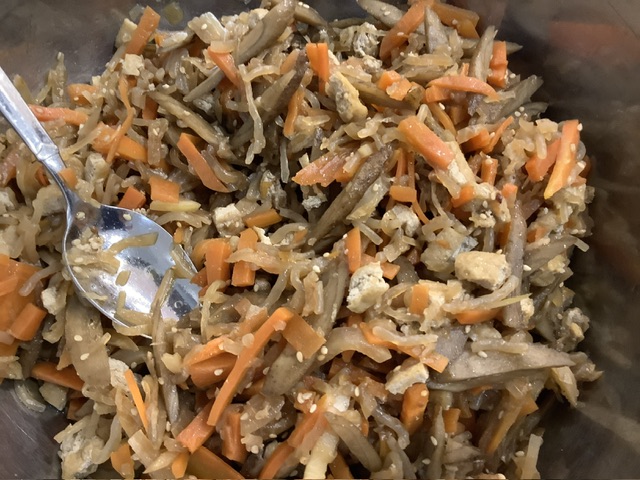 ごぼう・にんじん・大根・しらたき・油揚げが入ったきんぴらごぼうです。