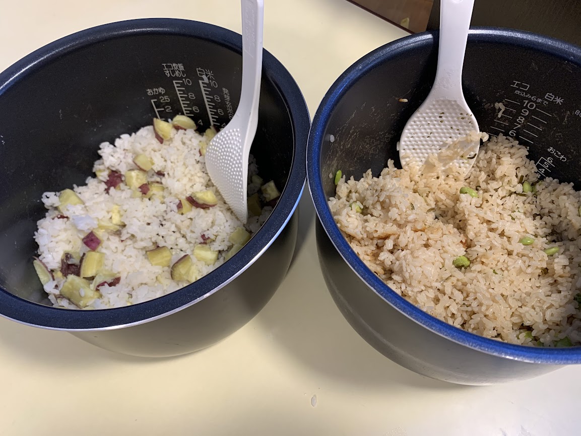 塩おにぎりから始まり、海苔、梅、鮭、昆布、コーンバター、炊き込みご飯(枝豆昆布、サツマイモ)などたくさんのおにぎりに挑戦しました。