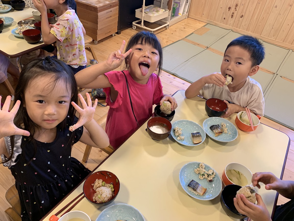 また、大人からすると一見簡単なおにぎりを「握る」という動作ですが、子どもたちにとっては力加減や手首、指先の動きなど初めて意識することがたくさんあり、脳をとても刺激する活動です。