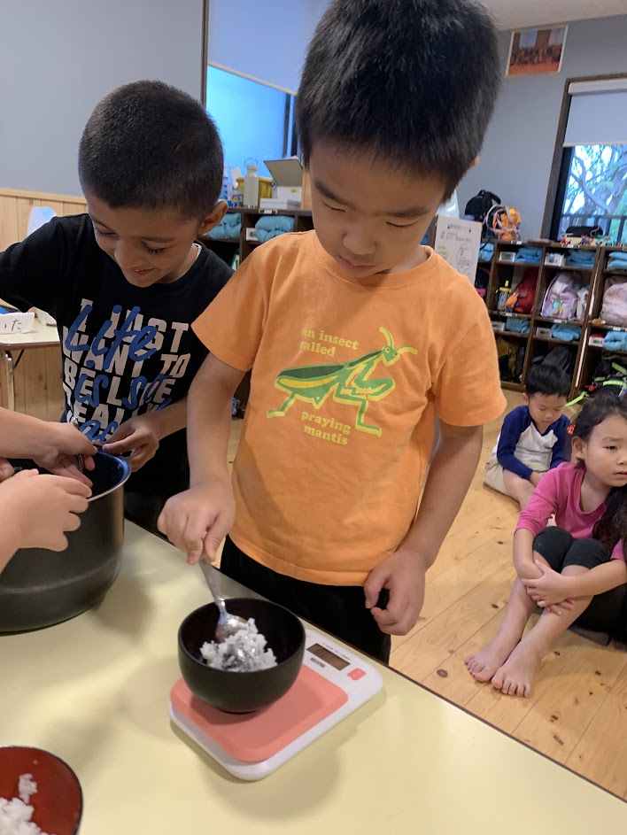 後日、無線前チームも無事にあすたべさんに行くことができました。直接見聞きして得た知識は、一方的に教わる情報よりもとても印象に残るものです。子どもたちは、自分の行動や言葉によって獲得した情報をもとに納得いくおにぎりを作ることができて、とても大きな充実感や満足感を得ているようでした。