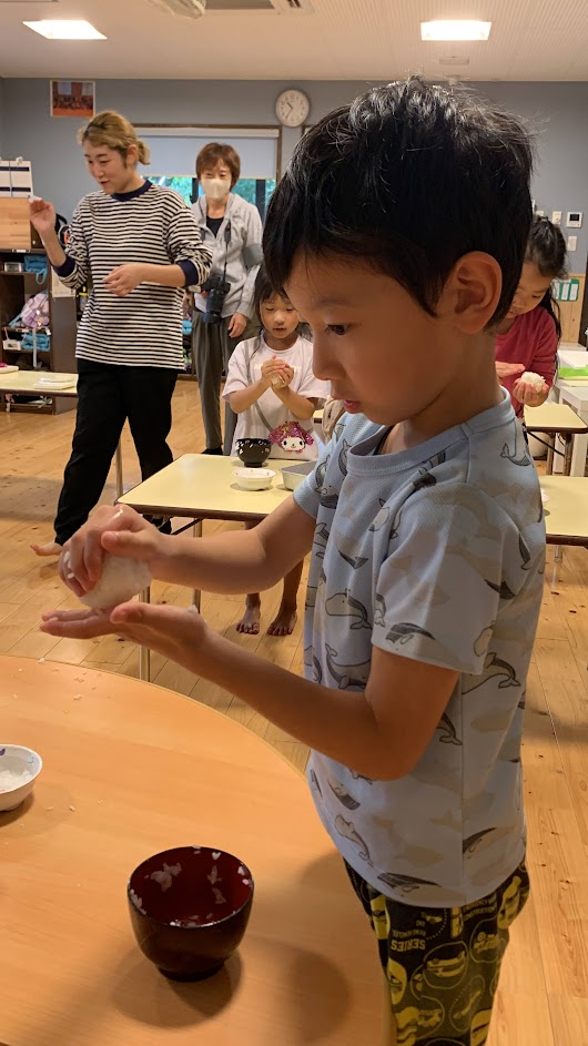 「次は、こうしてみよう!」と工夫しながらたくさんのおにぎりを握り続けていくことで、子どもたちなりに「上手くできた!」という手応えも感じられるようになり、