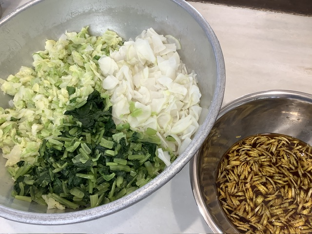 大根、キャベツ、小松菜をスチームにかけ、柚子の皮と果汁を入れました。