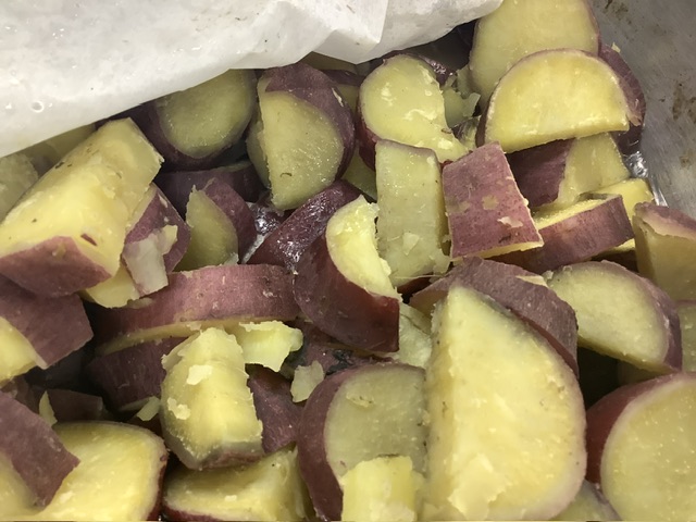 きび糖、バターで煮詰めて甘煮にしました。ホックホクの甘いさつまいもがとっても美味しかったですよ。