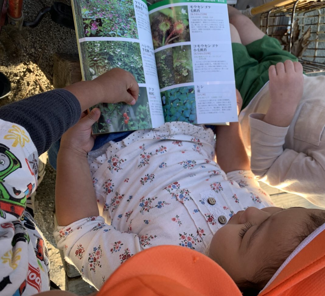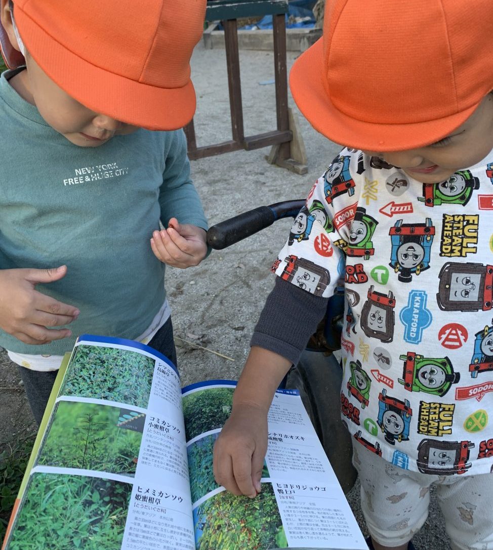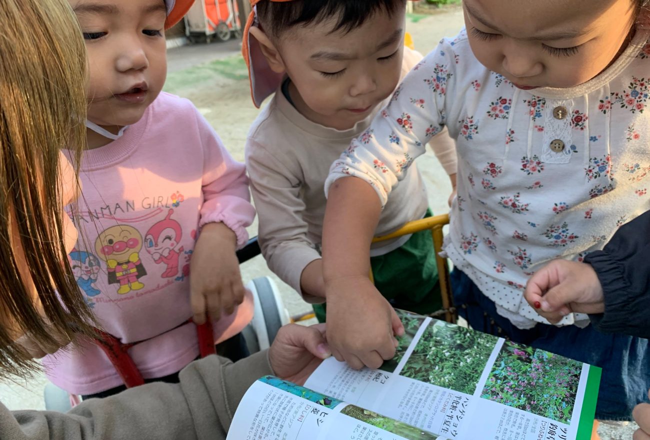 私は2歳児のこども達が、自分で調べ、持っている実と図鑑の写真を比較し、特徴を見分けることが出来たことに驚きました。