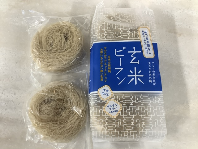 園で使用しているビーフンは、玄米100%、小麦不使用の玄米ビーフンを使っています。柔らかくツルっとコシがあるビーフンです。