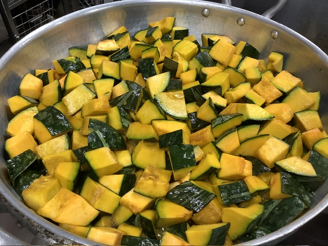 大量調理では、崩れないようキレイに煮るのはなかなか難しいのです。
